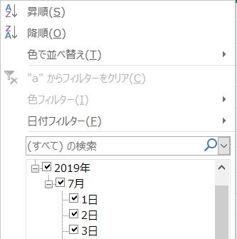 日付のフィルタ