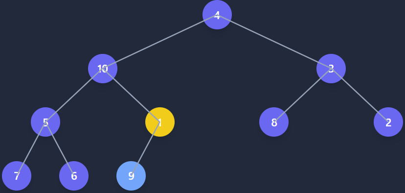- ルート(新しく先頭に来た要素)からヒープ化を実行